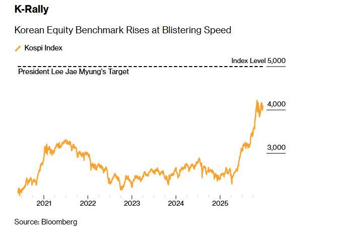 Είναι σπάνιο να βλέπεις έναν πολιτικό ηγέτη να θέτει δημοσίως ένα επίπεδο δείκτη ως στόχο, και η εκστρατεία «Kospi 5000» του Lee δεν προσέλκυσε ιδιαίτερη προσοχή όταν ανακοινώθηκε για πρώτη φορά. Τώρα, όλο και περισσότερες τράπεζες της Wall Street, συμπεριλαμβανομένων των JPMorgan και Citigroup, πιστεύουν ότι είναι εφικτός στόχος το 2026, εν μέρει χάρη στην παγκόσμια έκρηξη της τεχνητής νοημοσύνης, η οποία έχει αυξήσει τη ζήτηση για μετοχές της Νότιας Κορέας ως την προτιμώμενη συναλλαγή τεχνητής νοημοσύνης στην Ασία.