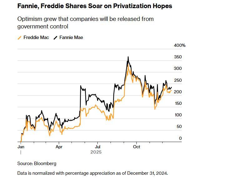 Η Fannie Mae και η Freddie Mac, οι γίγαντες της ενυπόθηκης χρηματοδότησης που βρίσκονται υπό τον έλεγχο της Ουάσιγκτον από την οικονομική κρίση, αποτελούν από καιρό αντικείμενο εικασιών σχετικά με το πότε και πώς το καθστώς αυτό θα αλλάξει. Ορισμένοι, όπως ο Μπιλ Ακμαν, επένδυσαν μαζικά στις δύο εταιρείες προσδοκώντςα να αποκομίσουν κέρδη από οποιοδήποτε σχέδιο ιδιωτικοποίησης, αλλά οι μετοχές παρέμειναν για χρόνια σε εξωχρηματιστηριακή διαπραγμάτευση.
