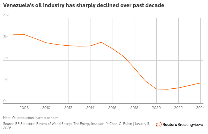 Πρόκειται για μια εξαιρετικά άμεση παραδοχή του ουσιαστικού ενδιαφέροντος των ΗΠΑ για τα αποθέματα πετρελαίου της χώρας, τα οποία θεωρούνται τα μεγαλύτερα στον κόσμο. Η πετροχημική βιομηχανία της Βενεζουέλας έχει μαραζώσει, με την παραγωγή το 2025 να ανέρχεται σε 1,1 εκατομμύρια βαρέλια την ημέρα, από 3,5 εκατομμύρια τη δεκαετία του 1970. Ο Τραμπ δήλωσε ότι η κυβέρνησή του θα παρέμβει για να διοικήσει τη χώρα και να επιβλέψει την αναβίωση της εξόρυξης πετρελαίου υπό την αιγίδα αμερικανικών εταιρειών.