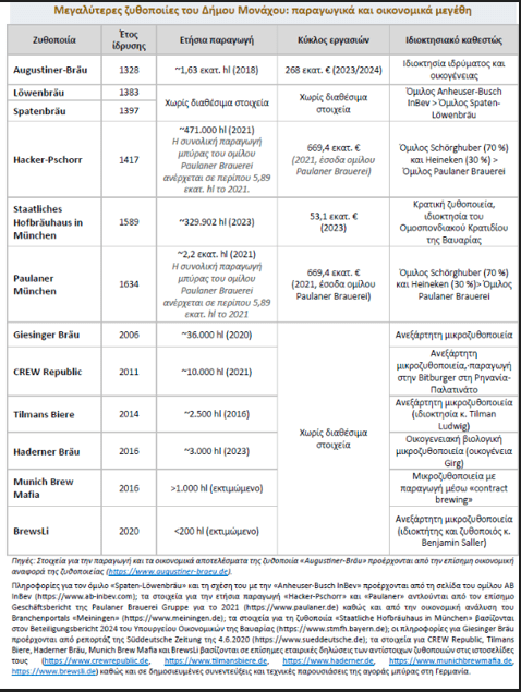 Δεν είναι τυχαίο, λοιπόν, ότι ο κλάδος της ζυθοποιίας στη Γερμανία με 1.459 επιχειρήσεις το 2024 είναι ένας από τους πιο ιστορικούς, και τους ισχυρότερους της γερμανικής, αλλά και της βαυαρικής οικονομίας ειδικότερα, με τη συνολική του αποτίμηση να ανέρχεται στα €9 δισ., απασχολώντας έως και 30.000 εργαζομένους, και τεράστια πολλαπλασιαστικά οφέλη σε σειρά άλλων τομέων: από τη γεωργική παραγωγή και τη βιομηχανία, έως την τυποποίηση και τον ποιοτικό έλεγχο, τα logistics, το εμπόριο και τον τουριστικό κλάδο.