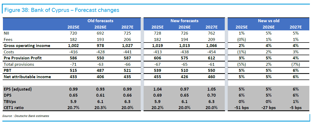Η Bank of Cyprus παραμένει πιο εξειδικευμένη και μικρότερη σε ρευστότητα, αλλά συνεχίζει να παρουσιάζει ισχυρή απόδοση. Η σταθεροποίηση των NII αποτελεί θετικό παράγοντα, ενώ η τράπεζα προχώρησε σε αναβάθμιση της πρόβλεψης FY25, με βελτιωμένες προοπτικές για 2026-27.