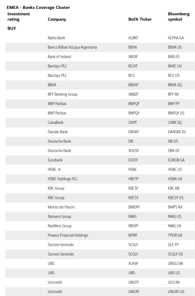 Στο πλαίσιο αυτό, οι ελληνικές τράπεζες Alpha Bank, Eurobank και Πειραιώς ξεχωρίζουν, με τον αμερικανικό οίκο να διατηρεί συστάσεις «αγοράς» για τις μετοχές τους.