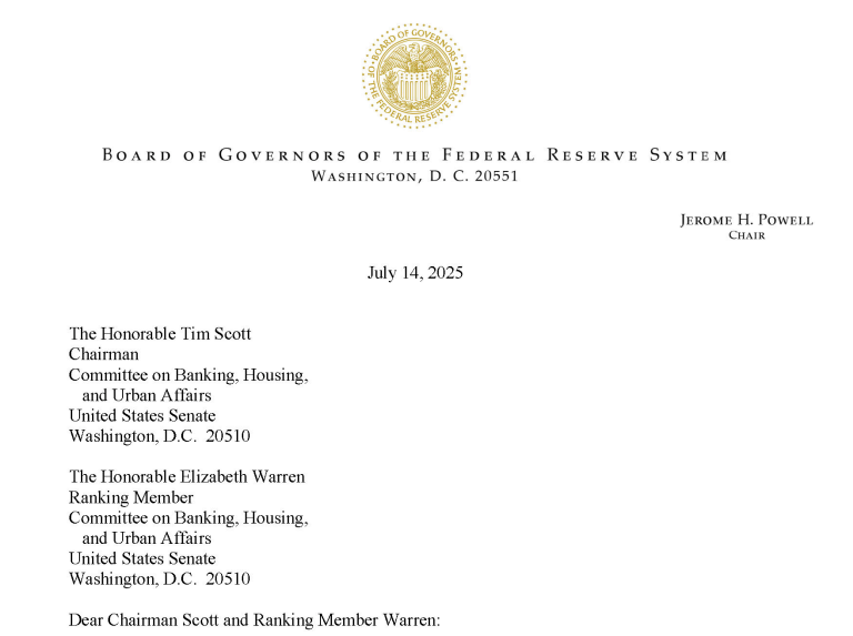 Η επιστολή που έστειλε o Πάουελ στην ισχυρή επιτροπή τραπεζών της Γερουσίας υποδηλώνει ότι ο επικεφαλής της κεντρικής τράπεζας είχε παράσχει εκτενείς απαντήσεις στους νομοθέτες σε απάντηση στις ερωτήσεις τους.