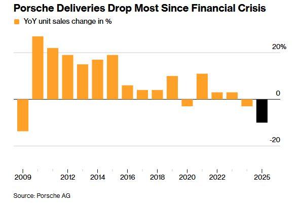 Η Porsche αντιμετώπισε μια σειρά προκλήσεων, μεταξύ των οποίων η διόρθωση ενός υπερβολικά φιλόδοξου σχεδίου για την κυκλοφορία ηλεκτρικών οχημάτων, το οποίο ανέτρεψε τα σχέδια για τα μοντέλα και επηρέασε αρνητικά τα περιθώρια κέρδους. Οι δασμοί στις ΗΠΑ — που έχουν ξεπεράσει την Κίνα ως η σημαντικότερη αγορά της Porsche — επίσης επηρέασαν αρνητικά τα κέρδη.