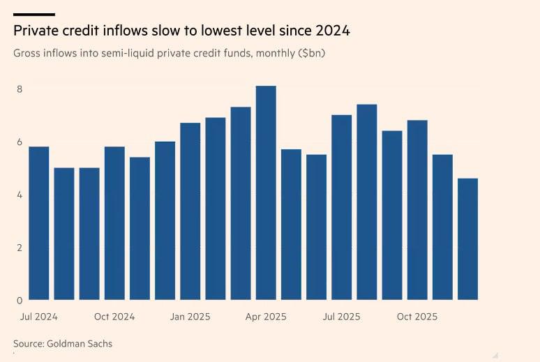 Περισσότερα από 7 δισ. δολάρια απέσυραν οι επενδυτές private credit από ορισμένα από τα μεγαλύτερα επενδυτικά κεφάλαια της Wall Street τους τελευταίους μήνες του 2025, καθώς εντείνονται οι ανησυχίες για την ποιότητα του πιστωτικού χαρτοφυλακίου μετά τις χρεοκοπίες των εταιρειών First Brands και Tricolor.