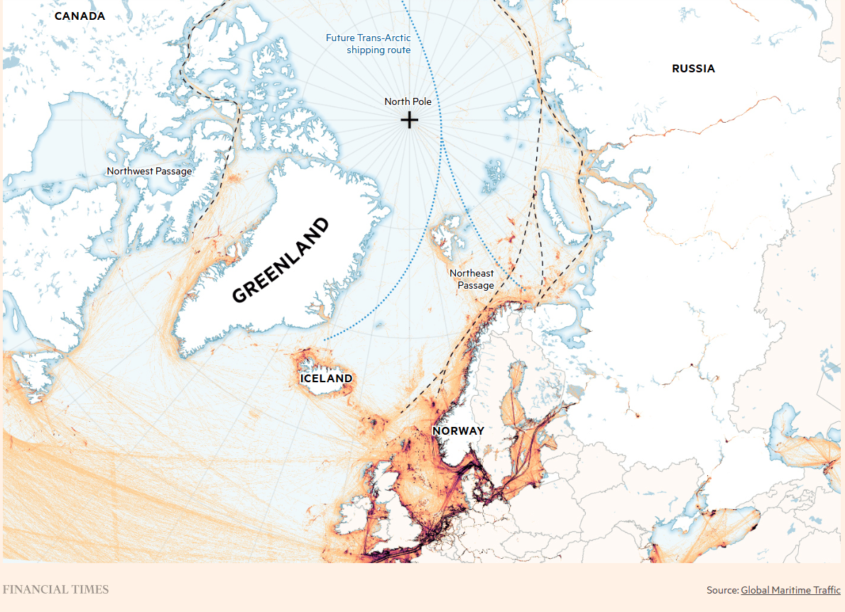 Για δεκαετίες, το πιο συχνά χρησιμοποιούμενο σύνθημα για την Αρκτική ήταν «Ψηλά ο Βορράς, Χαμηλά η ένταση». Τότε ήρθε ο Ντόναλντ Τραμπ, σύμφωνα με δημοσίευμα των Financial Times.