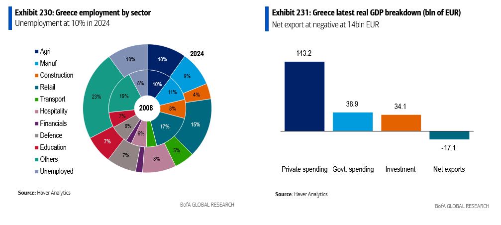Παρά τη θετική βραχυπρόθεσμη μακροοικονομική εικόνα, η Bank of America προειδοποιεί ότι δεν θα πρέπει να επισκιάζονται οι διαχρονικές διαρθρωτικές αδυναμίες της ελληνικής οικονομίας. Όπως επισημαίνει, ο τελικός στόχος για την Ελλάδα παραμένει η μετάβαση από ένα μοντέλο ανάπτυξης που βασίζεται στην ανάκαμψη σε ένα μοντέλο ανάπτυξης που στηρίζεται στην παραγωγικότητα.
