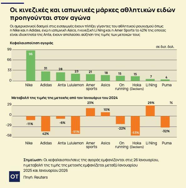Από τότε όμως, η αξία της μετοχής υποχώρησε κατά περίπου 80%, με τη χρηματιστηριακή κεφαλαιοποίηση να διαμορφώνεται στα 3,2 δισ. ευρώ — μόλις το ένα όγδοο της Adidas.