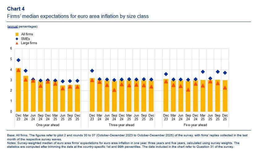 Η έκθεση που δημοσιεύθηκε παρουσιάζει τα κύρια αποτελέσματα του 37ου κύκλου της έρευνας SAFE για τη ζώνη του ευρώ. Η έρευνα διεξήχθη μεταξύ 19 Νοεμβρίου και 15 Δεκεμβρίου 2025. Σε αυτόν τον κύκλο της έρευνας, οι επιχειρήσεις κλήθηκαν να απαντήσουν σε ερωτήσεις σχετικά με τις οικονομικές και χρηματοδοτικές εξελίξεις κατά την περίοδο μεταξύ Οκτωβρίου και Δεκεμβρίου 2025. Επιπλέον, οι επιχειρήσεις ανέφεραν τις προσδοκίες τους για τον πληθωρισμό, τις τιμές πώλησης και άλλα κόστη στη ζώνη του ευρώ. Το δείγμα περιλάμβανε 5.067 επιχειρήσεις στη ζώνη του ευρώ, εκ των οποίων 4.684 (92%) είχαν λιγότερους από 250 υπαλλήλους.