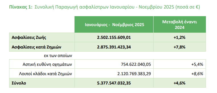 Η παραγωγή ασφαλίστρων τον Νοέμβριο του 2025