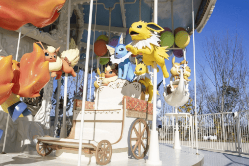 Το πάρκο διαθέτει επίσης δύο αξιοθέατα: το Pika Pika Paradise, μια βόλτα με τον Pikachu που «τροφοδοτείται από ηλεκτρικά Pokemon» και το Vee Vee Voyage, μια βόλτα με καρουζέλ με διάφορα Pokemon, συμπεριλαμβανομένων των Rapidash και Eevee.