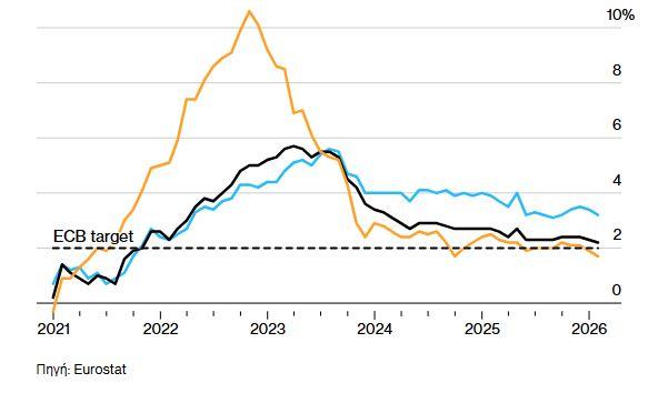Ο πληθωρισμός στην ευρωζώνη υποχωρεί κάτω από τον στόχο της ΕΚΤ. Σύγκριση πληθωρισμού με δομικό πληθωρισμό και πληθωρισμό υπηρεσιών