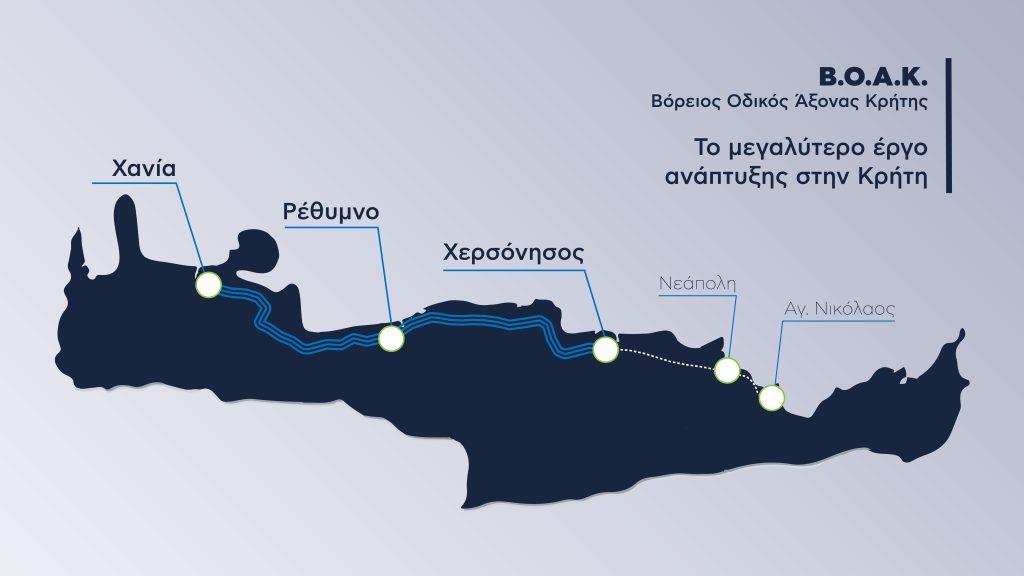 Η ΔΙΚΤΑΙΟΝ ΠΑΡΑΧΩΡΗΣΕΙΣ έχει αναλάβει ως παραχωρησιούχος την υλοποίηση του έργου για τη «Μελέτη – Κατασκευή – Χρηματοδότηση – Λειτουργία – Συντήρηση και Εκμετάλλευση του Βόρειου Οδικού Άξονα Κρήτης (Β.Ο.Α.Κ.) στο τμήμα Χανιά – Ηράκλειο», ενός από τα μεγαλύτερα και πλέον σύνθετα έργα υποδομής που κατασκευάζονται σήμερα στη χώρα. Το έργο πραγματοποιείται μέσω σύμβασης παραχώρησης διάρκειας 35 ετών, με δικαίωμα προαίρεσης για το τμήμα Χανιά – Κίσσαμος που έχει ενεργοποιηθεί ήδη από τον Δεκέμβριο, και συνολικό προϋπολογισμό που ανέρχεται σε περίπου €2 δισ.