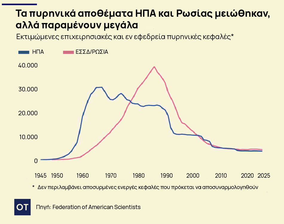Οι ΗΠΑ και η Ρωσία κατέχουν μεταξύ τους το 86% του παγκόσμιου αποθέματος καταστροφικών όπλων, ακόμη και όταν το οπλοστάσιο της Κίνας έχει διπλασιαστεί τα τελευταία χρόνια.