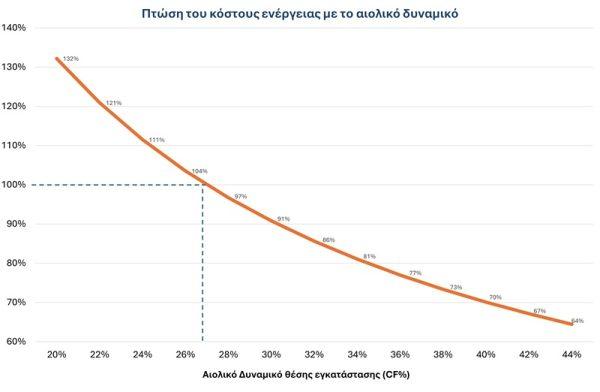 Κατεβάστε το διάγραμμα που δείχνει πώς μειώνεται το κόστος ενέργειας όσο αυξάνεται το αιολικό δυναμικό ΕΔΩ