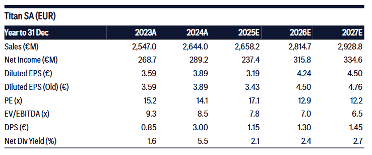 Οι πρωτοβουλίες αυτές αναμένεται να βελτιώσουν δομικά τα περιθώρια κέρδους και να στηρίξουν την ανάπτυξη των αποτελεσμάτων της Titan. Ως αποτέλεσμα, η Citi αναβάθμισε την τιμή-στόχο της μετοχής από 56,1 ευρώ σε 70 ευρώ.
