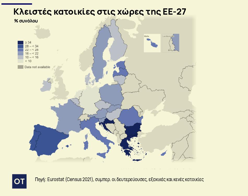 Παρά τη στενότητα στην αγορά, το 35% των κανονικών κατοικιών της χώρας παραμένει μη κατοικούμενο — το τρίτο υψηλότερο ποσοστό στην Ευρωπαϊκή Ένωση.