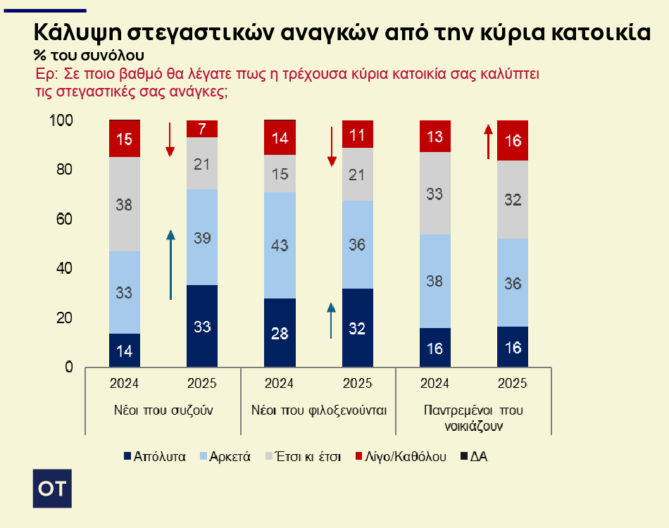 Η νέα, επαναληπτική, έρευνα καταγράφει βελτίωση της ικανοποίησης από την τρέχουσα κατοικία (+9%), κυρίως μεταξύ των ιδιοκτητών.