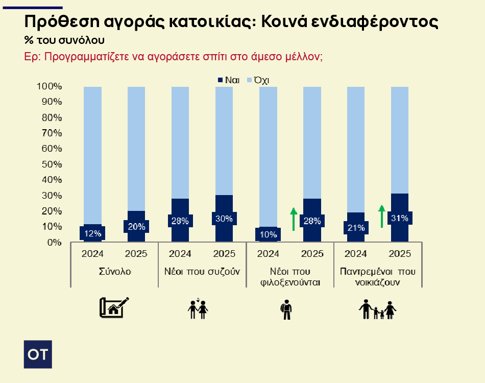 Παρά τις πιέσεις, η πρόθεση αγοράς κατοικίας αυξάνεται κατά 8% και κατά 13% μεταξύ των ενοικιαστών.