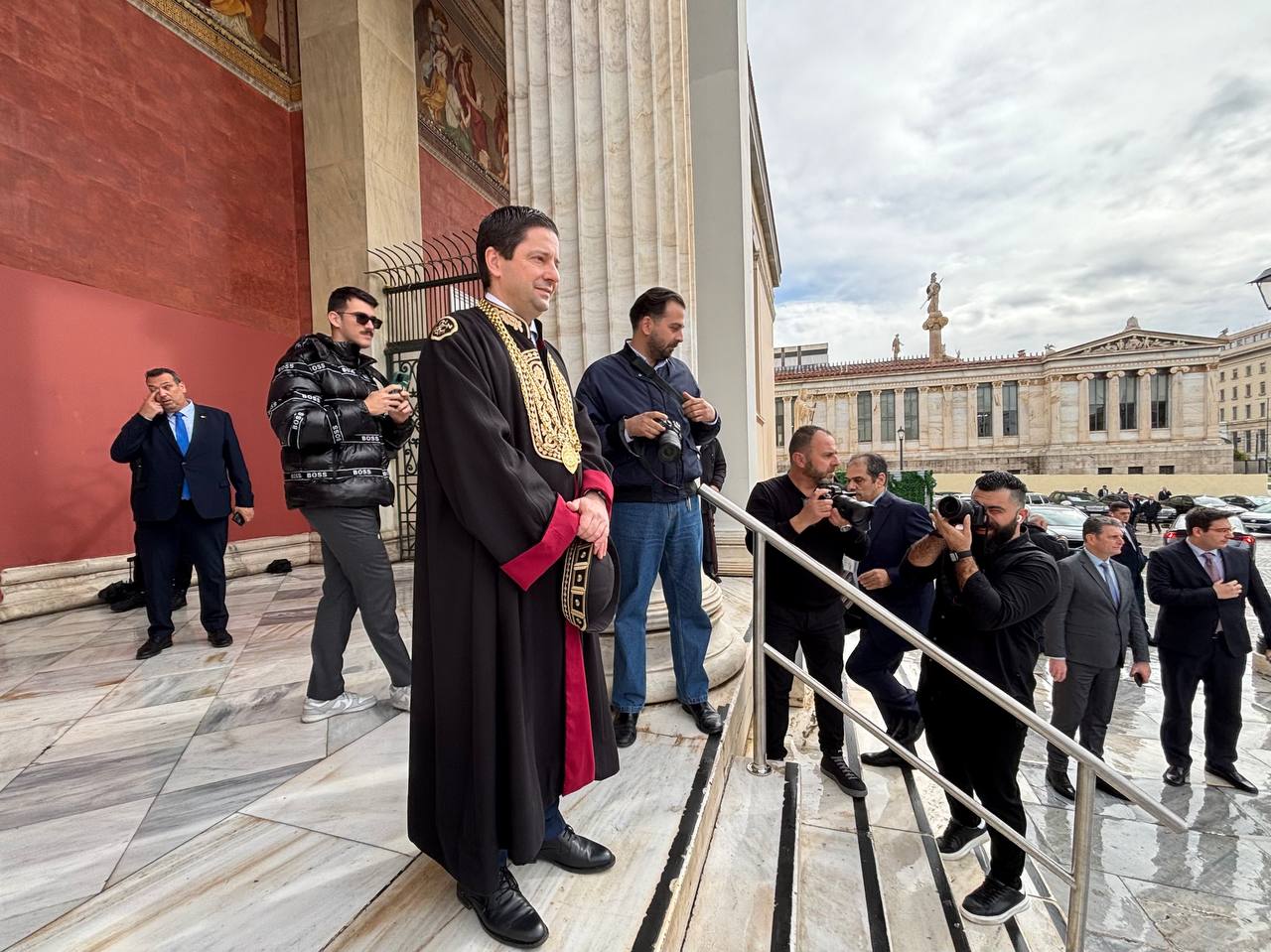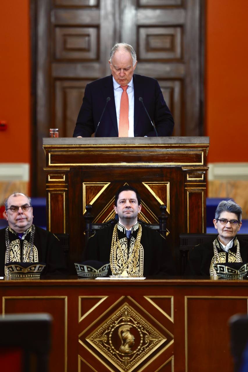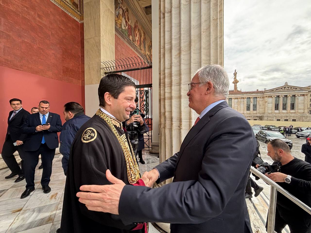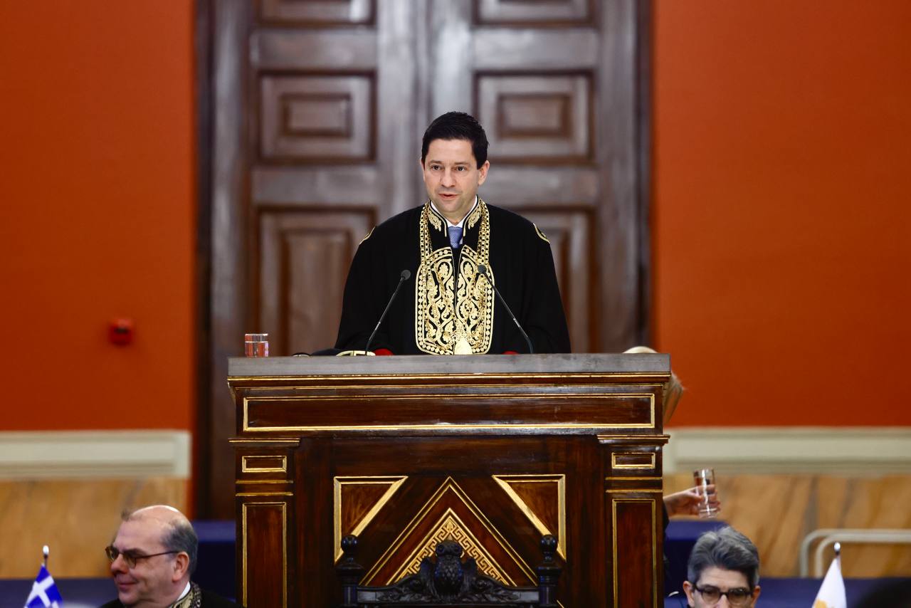 »Πέραν της χαράς και της υπερηφάνειας, αισθάνομαι και ιδιαίτερη τιμή και συγκίνηση, γιατί έχω το προνόμιο να εκπροσωπώ, στη σεμνή αυτή τελετή που φιλοξενείται στο αρχαιότερο ανώτατο εκπαιδευτικό ίδρυμα της σύγχρονης Ελλάδας, την Κυπριακή Πολιτεία και τον κυπριακό λαό».