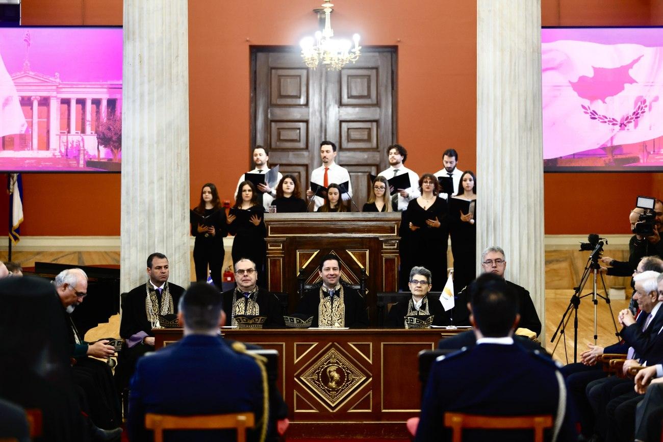 Με κάθε επισημότητα πραγματοποιήθηκε σήμερα, 17 Φεβρουαρίου 2026, στη Μεγάλη Αίθουσα του κεντρικού κτηρίου του Εθνικό και Καποδιστριακό Πανεπιστήμιο Αθηνών η τελετή για την ίδρυση και έναρξη λειτουργίας του Παραρτήματός του στην Κύπρο, σηματοδοτώντας μια ιστορική επέκταση της ακαδημαϊκής του παρουσίας εκτός Ελλάδας.