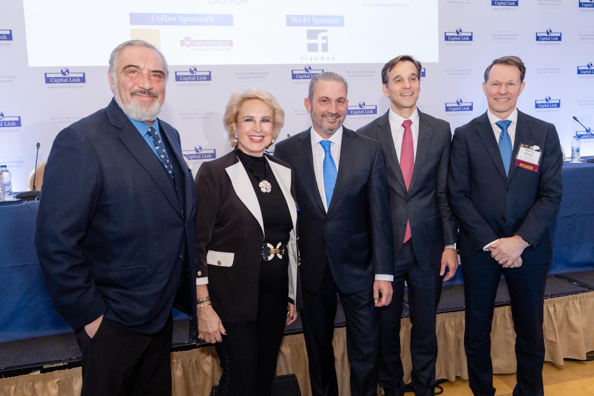 «It was a great honour to moderate such an esteemed panel at Capital Link where we discussed the high level of commitment from ship operators, owners and industry organisations in supporting seafarer welfare against a backdrop of geopolitical unrest and political uncertainty. John Xylas, Paul Pathy, Claes Berglund and Rolf Westfal-Larsen, I greatly enjoyed our conversation, which explored the challenges and opportunities shaping the global shipping industry, from navigating an increasingly complex geopolitical landscape, to the roadmap for decarbonisation and the people that power our industry, as well as the strategic choices that will define the decade ahead».