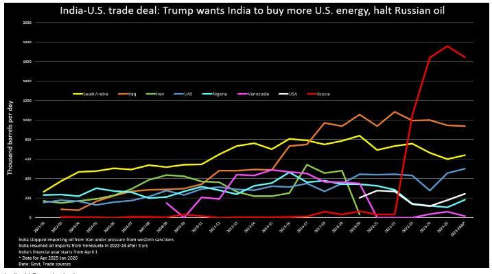 Η Ουάσιγκτον είχε αυξήσει τους δασμούς εισαγωγής για τα προϊόντα από την Ινδία λόγω των αγορών ρωσικού πετρελαίου. Ωστόσο, στο πλαίσιο μιας προσωρινής εμπορικής συμφωνίας, οι ΗΠΑ μείωσαν τον δασμολογικό συντελεστή στο 18% και κατάργησαν τον τιμωρητικό δασμό 25%, αναφέροντας ότι η Νέα Δελχί συμφώνησε να σταματήσει τις αγορές από τη Μόσχα.