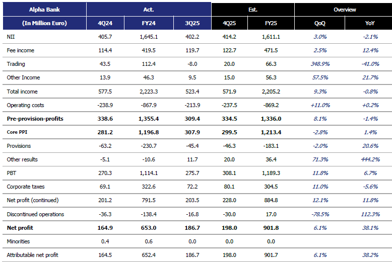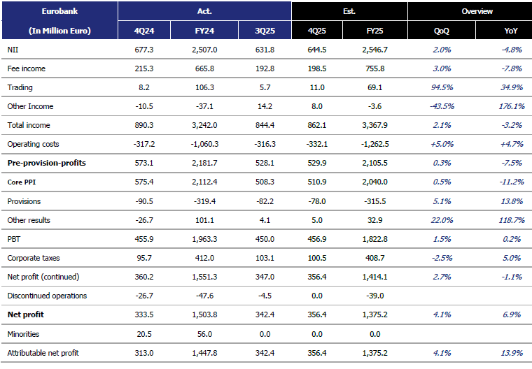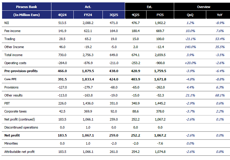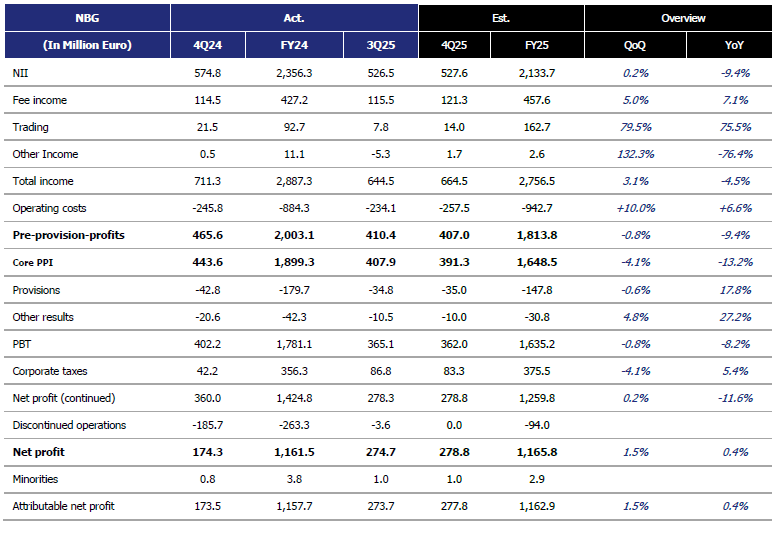 Οι εισροές καταθέσεων παρέμειναν θετικές, η ποιότητα ενεργητικού σταθερή και ο στόχος MREL επιτεύχθηκε. Η καθαρή κερδοφορία για το 2025 εκτιμάται κοντά στα 900 εκατ. ευρώ, με τις πρόσφατες εξαγορές να ενισχύουν περαιτέρω την αναμενόμενη απόδοση ιδίων κεφαλαίων.