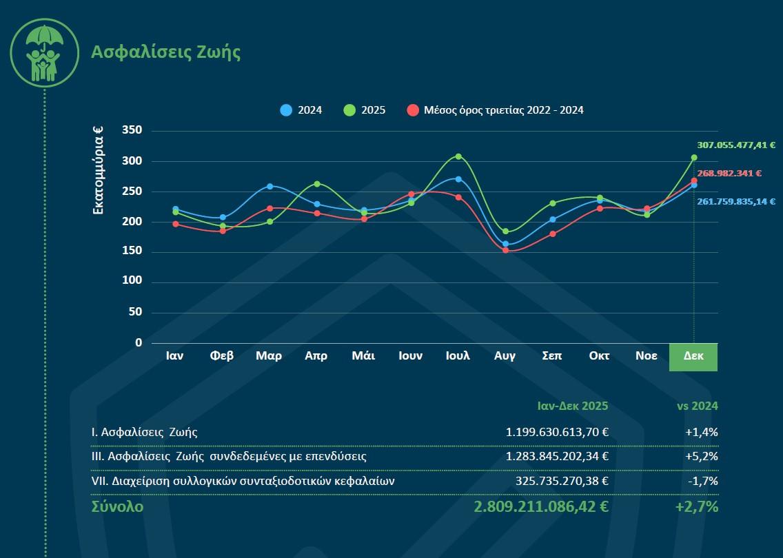 -Ασφαλίσεις Ζωής: 2.809.211.086,42 ευρώ (+2,7%)
