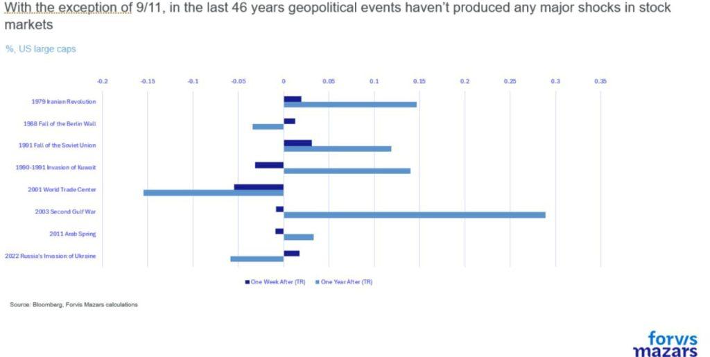 Ως προς τις χρηματαγορές, όπως και τον Ιούλιο, δεν αναμένουμε ιδιαίτερη αντίδραση. Ιστορικά, τα γεωπολιτικά γεγονότα, ιδίως όταν είναι τοπικά, είχαν μικρή μακροπρόθεσμη επίπτωση στα επικίνδυνα περιουσιακά στοιχεία.