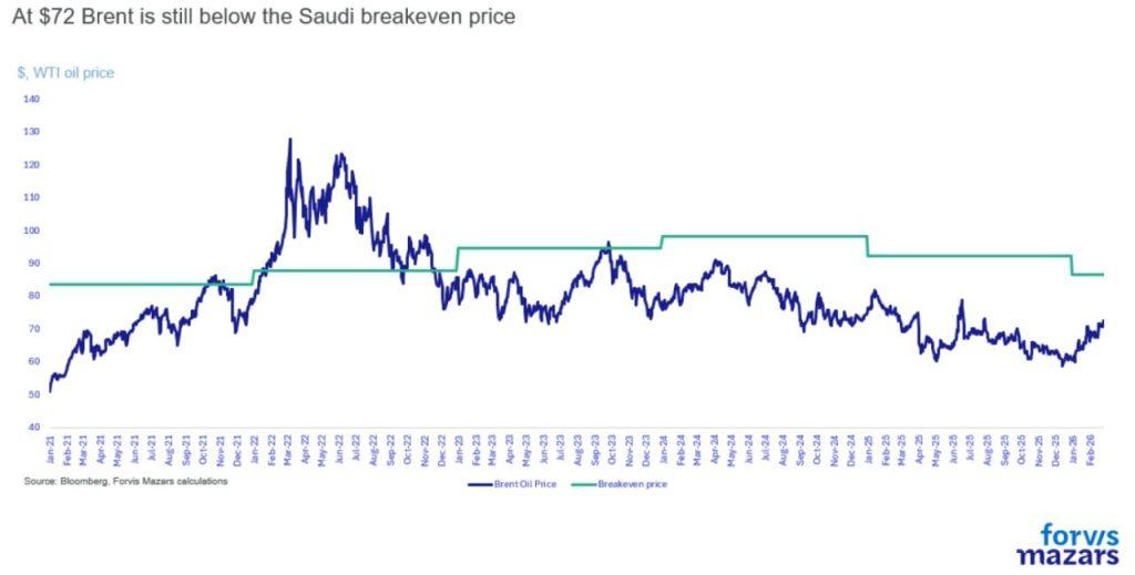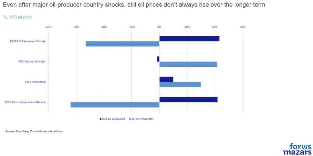 Αξίζει επίσης να σημειωθεί πως ιστορικά, υπάρχει χαμηλή μακροπρόθεσμη συσχέτιση μεταξύ διαταραχών στις χώρες παραγωγούς πετρελαίου και τιμών πετρελαίου. Στο μεταξύ, η Σαουδική Αραβία δείχνει διατεθειμένη να αποδεχτεί χαμηλότερες τιμές πετρελαίου εδώ και καιρό, πιθανώς σε ανταλλαγή για καλύτερη πρόσβαση στις δυτικές αγορές.