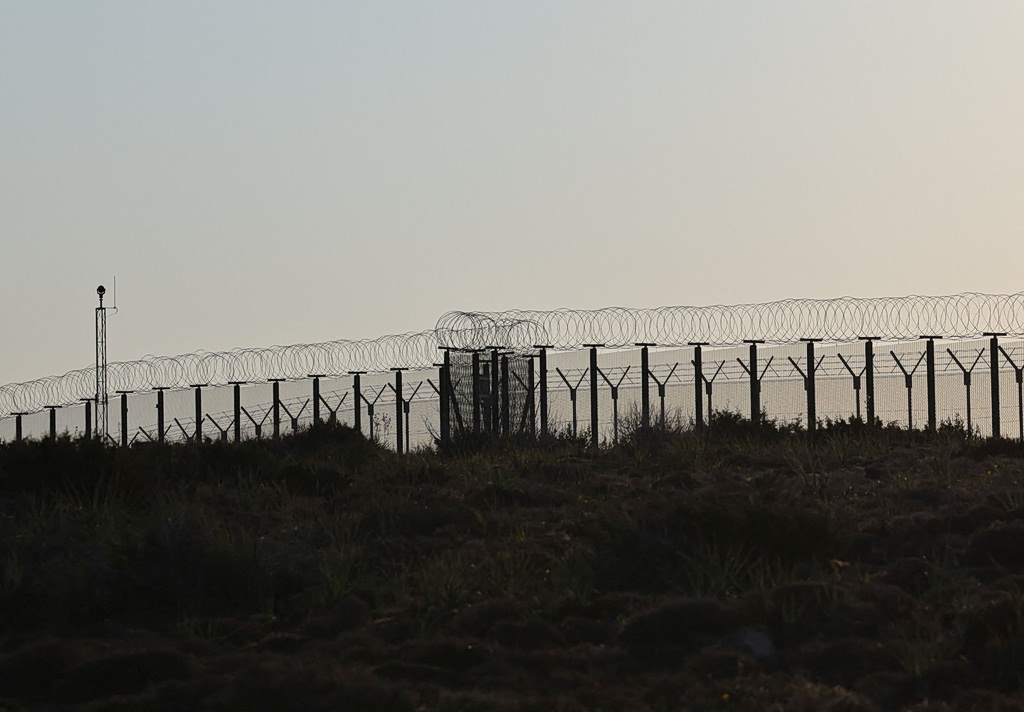 A fence of RAF Akrotiri, a British sovereign base in Cyprus, which was hit by an unmanned drone overnight, causing limited damage, Cyprus March 2, 2026. REUTERS/Yiannis Kourtoglou