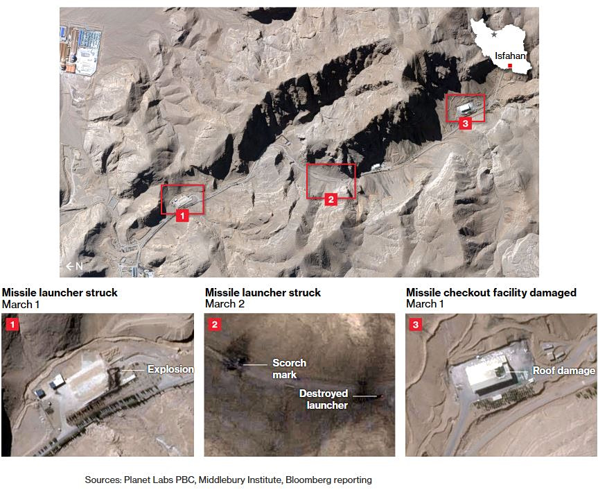 Απεικονίσεις που εξετάστηκαν από ανεξάρτητους αναλυτές υποδηλώνουν ότι η αμερικανο-ισραηλινή εκστρατεία έχει καταφέρει να καταστρέψει μέρος του οπλοστασίου βαλλιστικών πυραύλων και μη επανδρωμένων αεροσκαφών που η Τεχεράνη χρησιμοποίησε για να χτυπήσει στόχους σε τουλάχιστον 10 χώρες τις τελευταίες τέσσερις ημέρες, σύμφωνα με αξιωματούχους της περιφερειακής ασφάλειας.