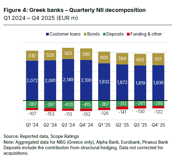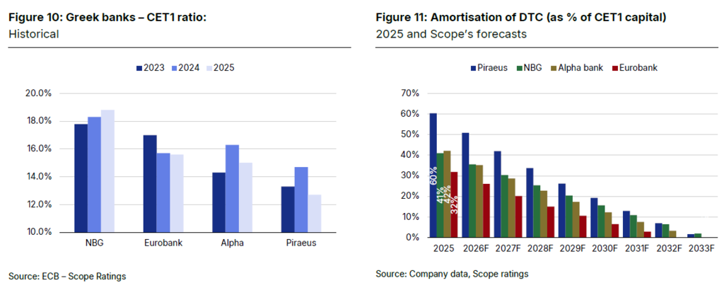 Η Scope εμφανίζεται επίσης θετική για την πορεία των προβλέψεων για επισφαλή δάνεια, εκτιμώντας ότι η ανάγκη για περαιτέρω «καθαρισμό» των ισολογισμών έχει μειωθεί σημαντικά, ενώ η ορατότητα για την πορεία των εξυπηρετούμενων δανείων είναι βελτιωμένη για το 2026.