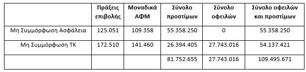 Το συνολικό ποσό των προστίμων και οφειλών ανέρχεται σε 109,5 εκ. ευρώ.