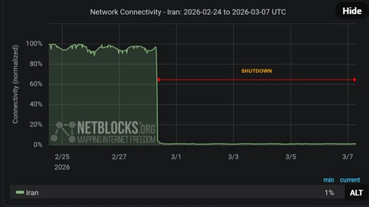 Αναλυτές λένε ότι η έλλειψη σύνδεσης στο διαδίκτυο στο Ιράν είναι πιθανό να ενισχύει την αβεβαιότητα του πολέμου