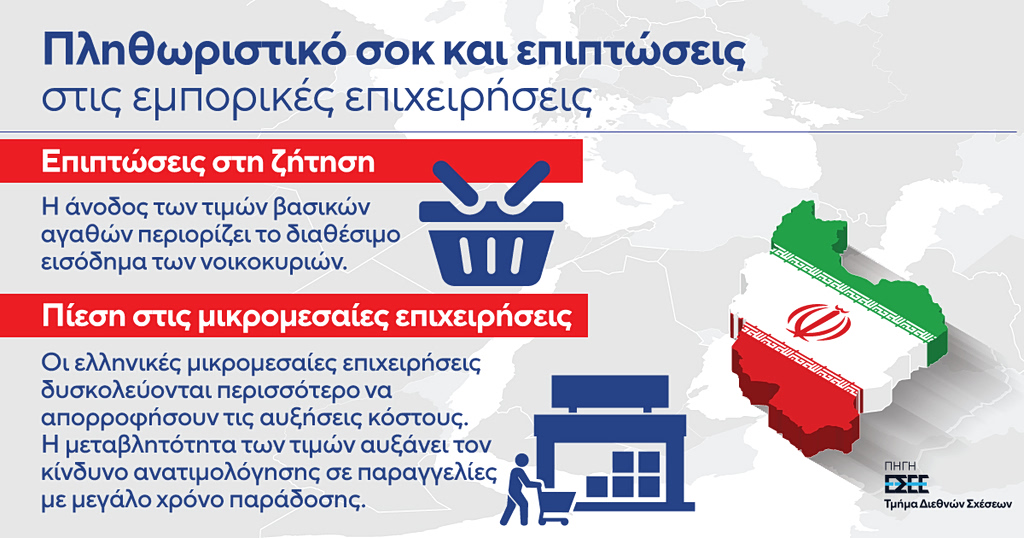 Συγκεκριμένα, επισημαίνεται ότι οι γεωπολιτικές εντάσεις στη Μέση Ανατολή μπορούν να μεταφερθούν στο λιανικό εμπόριο κυρίως μέσω ενός νέου ενεργειακού σοκ, της αύξησης του κόστους μεταφορών και των διαταραχών στις διεθνείς εφοδιαστικές αλυσίδες.