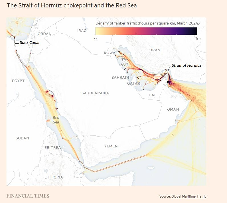 Σε μία από τις πιο ταραχώδεις εβδομάδες στην ιστορία της αγοράς πετρελαίου, το ατού του Ιράν ήταν ο de facto αποκλεισμός του στενού, μέσω του οποίου ρέει κανονικά το ένα πέμπτο του παγκόσμιου πετρελαίου και υγροποιημένου φυσικού αερίου. Στο στενότερο σημείο του, το στενό έχει πλάτος λιγότερο από 21 ναυτικά μίλια, θέτοντας τα δεξαμενόπλοια επικίνδυνα κοντά σε drones και πυραύλους από τη νότια ακτή του Ιράν.