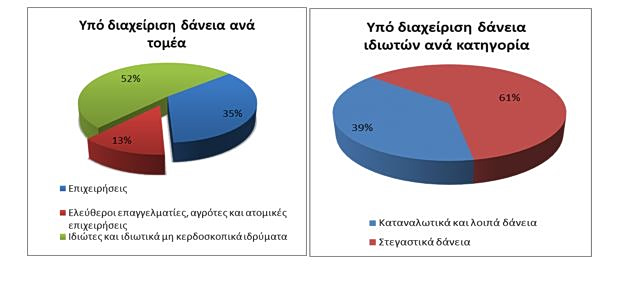Η ονομαστική αξία των υπό διαχείριση δανείων προς ιδιώτες και ιδιωτικά μη κερδοσκοπικά ιδρύματα μειώθηκε κατά 57 εκατ. ευρώ έναντι του προηγούμενου τριμήνου και διαμορφώθηκε σε 41.308 εκατ. ευρώ στο τέλος του δ΄ τριμήνου του 2025. Αναλυτικότερα, τα υπό διαχείριση καταναλωτικά δάνεια παρουσίασαν αύξηση κατά 28 εκατ. ευρώ και διαμορφώθηκαν σε 15.790 εκατ. ευρώ. Τα υπό διαχείριση στεγαστικά δάνεια παρουσίασαν μείωση κατά 72 εκατ. ευρώ και διαμορφώθηκαν σε 25.182 εκατ. ευρώ.