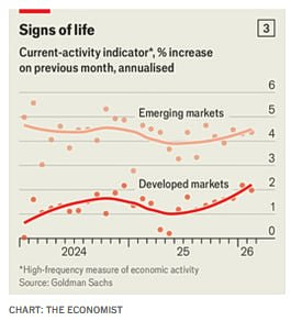 Μια σειρά δεδομένων σε πραγματικό χρόνο υποδηλώνει ότι τους τελευταίους μήνες η ανάπτυξη στον πλούσιο κόσμο έχει επιταχυνθεί. Παρά τις διακυμάνσεις στις αγορές ενέργειας, λίγοι επενδυτές πανικοβάλλονται για μια ύφεση.