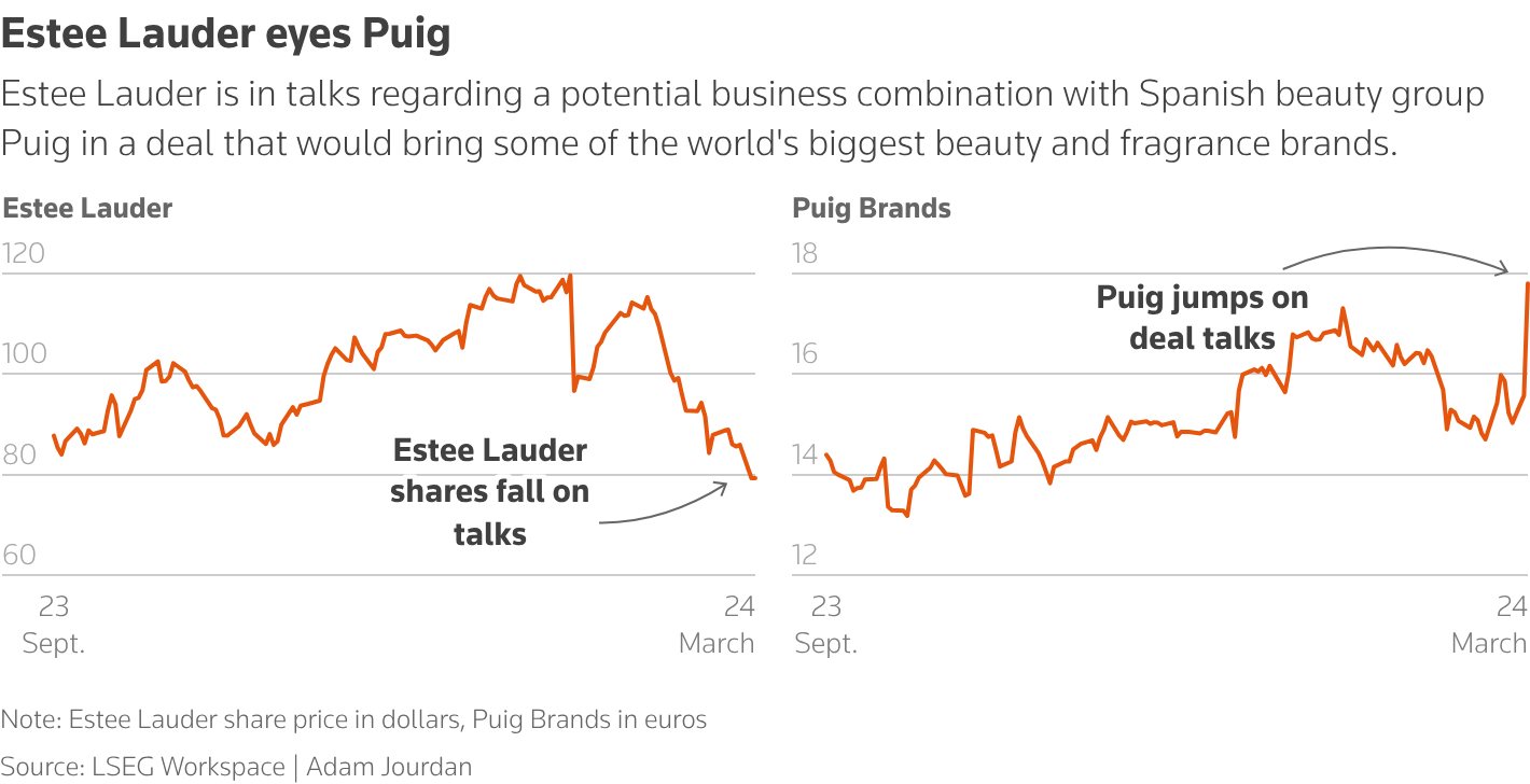 Μια συμφωνία με την Estée Lauder θα έβαζε τέλος στην δύσκολη διετή πορεία της Puig ως εισηγμένης εταιρείας, κατά την οποία οι μετοχές της έχουν συνεχώς μειωθεί, διαπραγματευόμενες επί του παρόντος περίπου 30% κάτω από την αξία τους τον Μάιο του 2024, την εποχή της αρχικής δημόσιας προσφοράς.