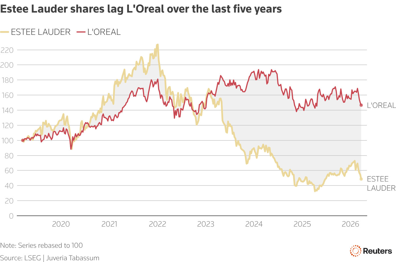 Η τιμή της μετοχής της Estée Lauder Companies έχει μειωθεί κατά περισσότερο από τα τρία τέταρτα από τις αρχές του 2022, καθώς η υπερβολική εξάρτηση από την υποτονική κινεζική αγορά και τα πολυκαταστήματα μείωσε τα έσοδά της.
