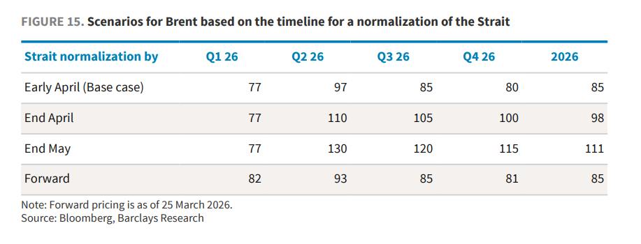 – εάν τα Στενά του Ορμούζ επανέλθουν σε κανονική λειτουργία έως τις αρχές Απριλίου, διατηρείται η πρόβλεψη για μέση τιμή 85 δολάρια το 2026