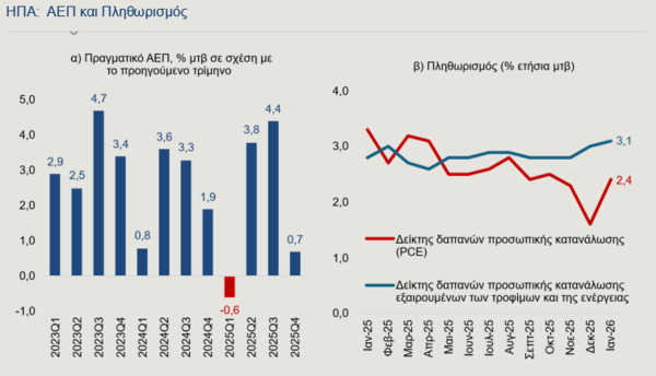 Επίσης, οι αυξήσεις των τιμών που συνδέονται με τους δασμούς της κυβέρνησης Tραμπ εξακολουθούν να διαχέονται στην οικονομία και αν προστεθεί και το σοκ του πετρελαίου αναμένεται να ασκηθεί πίεση στην καταναλωτική δαπάνη και την απασχόληση και ανοδική πίεση στον πληθωρισμό, αναφέρεται στην ανάλυση της Alpha Bank.