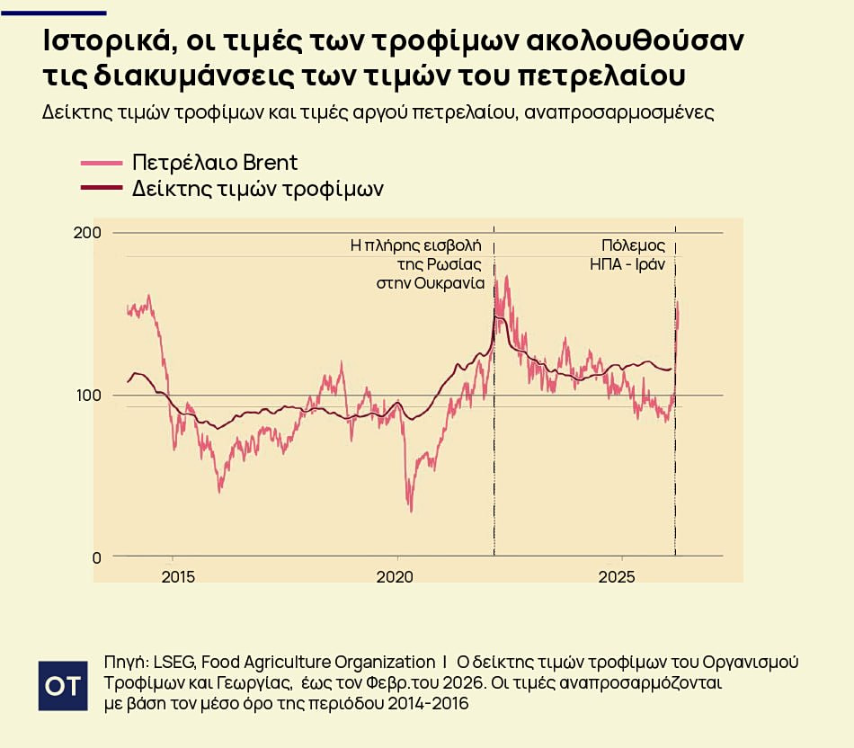 Ο αντίκτυπος στον παγκόσμιο σύστημα διατροφής που προκαλεί ο πόλεμος με το Ιράν θα μπορούσε να είναι ακόμη μεγαλύτερος από την κρίση που προκάλεσε η εισβολή της Ρωσίας στην Ουκρανία το 2022, λένε οι ειδικοί. Και αυτό γιατί όπως επισημαίνουν, η αρχική διαταραχή πριν από τέσσερα χρόνια επικεντρώθηκε στις εξαγωγές σιτηρών από τη Μαύρη Θάλασσα, πριν επεκταθεί στις αγορές ενέργειας και λιπασμάτων. Αυτή τη φορά πλήττει ταυτόχρονα διάφορα τμήματα του συστήματος.