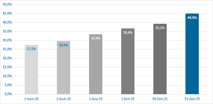 Από την εικόνα του χαρτοφυλακίου σε ισχύ των ανωτέρω επιχειρήσεων, το ποσοστό επί του συνόλου των συμβολαίων που διαθέτει την κάλυψη των φυσικών φαινομένων*, εξελίσσεται ως εξής: