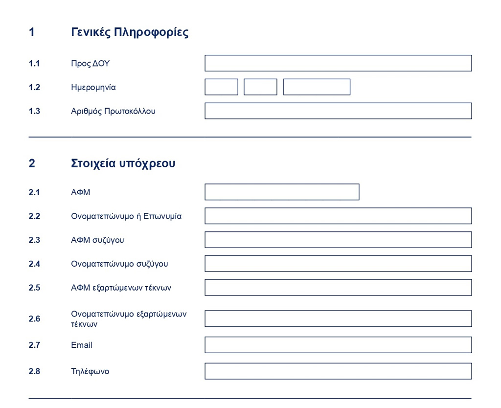 Στην ειδική αίτηση που θα υποβληθεί στην ΑΑΔΕ, ο φορολογούμενος θα πρέπει να συμπληρώσει με επιμέλεια συγκεκριμένα πεδία. Αυτά είναι:
