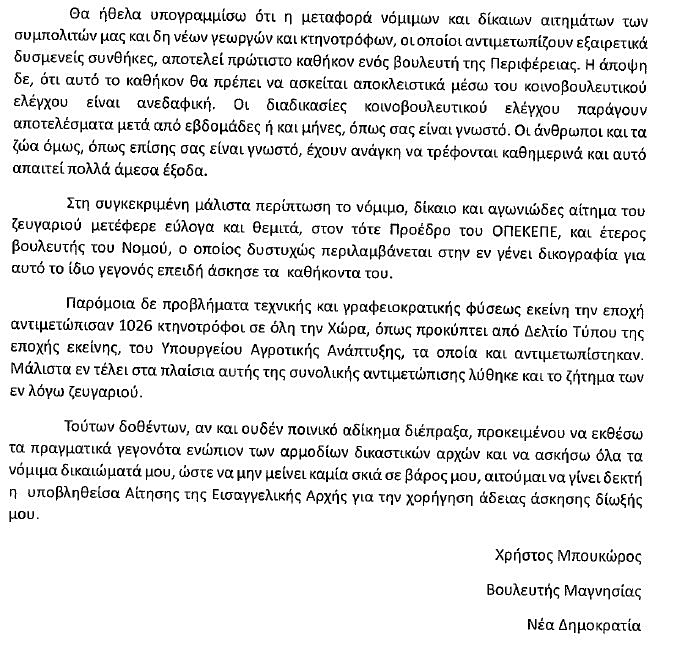 Το υπόμνημα του Χρήστου Μπουκώρου στην Επιτροπή Δεοντολογίας.