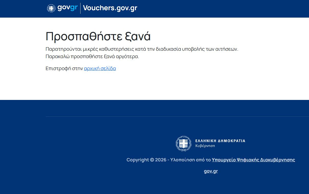 Μετ’ εμποδίων συνεχίζεται και σήμερα η υποβολή των αιτήσεων για τη χορήγηση του επιδόματος καυσίμων fuel pass. Μετά το χθεσινό αλαλούμ με τα πολλά προβλήματα που δημιουργούνταν σε όσους προσπαθούσαν να κάνουν αίτηση, υπήρξε κυβερνητική ανακοίνωση περί κατανομής των αιτήσεων, με βάση το ΑΦΜ. Ωστόσο, ούτε αυτό φαίνεται ότι έχει λειτουργήσει επαρκώς, καθότι και σήμερα παρατηρούνται προβλήματα στην προσπάθεια εισόδου των πολιτών. Σύμφωνα με την…απάντηση που βγάζει το σύστημα «Παρατηρούνται μικρές καθυστερήσεις κατά την διαδικασία υποβολής των αιτήσεων. Παρακαλώ προσπαθήστε ξανά αργότερα».