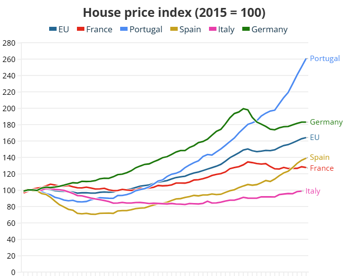 «Στην Πορτογαλία, η αύξηση των τιμών οφείλεται στην πολύ περιορισμένη προσφορά, ιδίως στη Λισαβόνα, το Πόρτο και τις γύρω περιοχές, αλλά και σε στοχευμένα μέτρα κρατικής στήριξης», είπε.